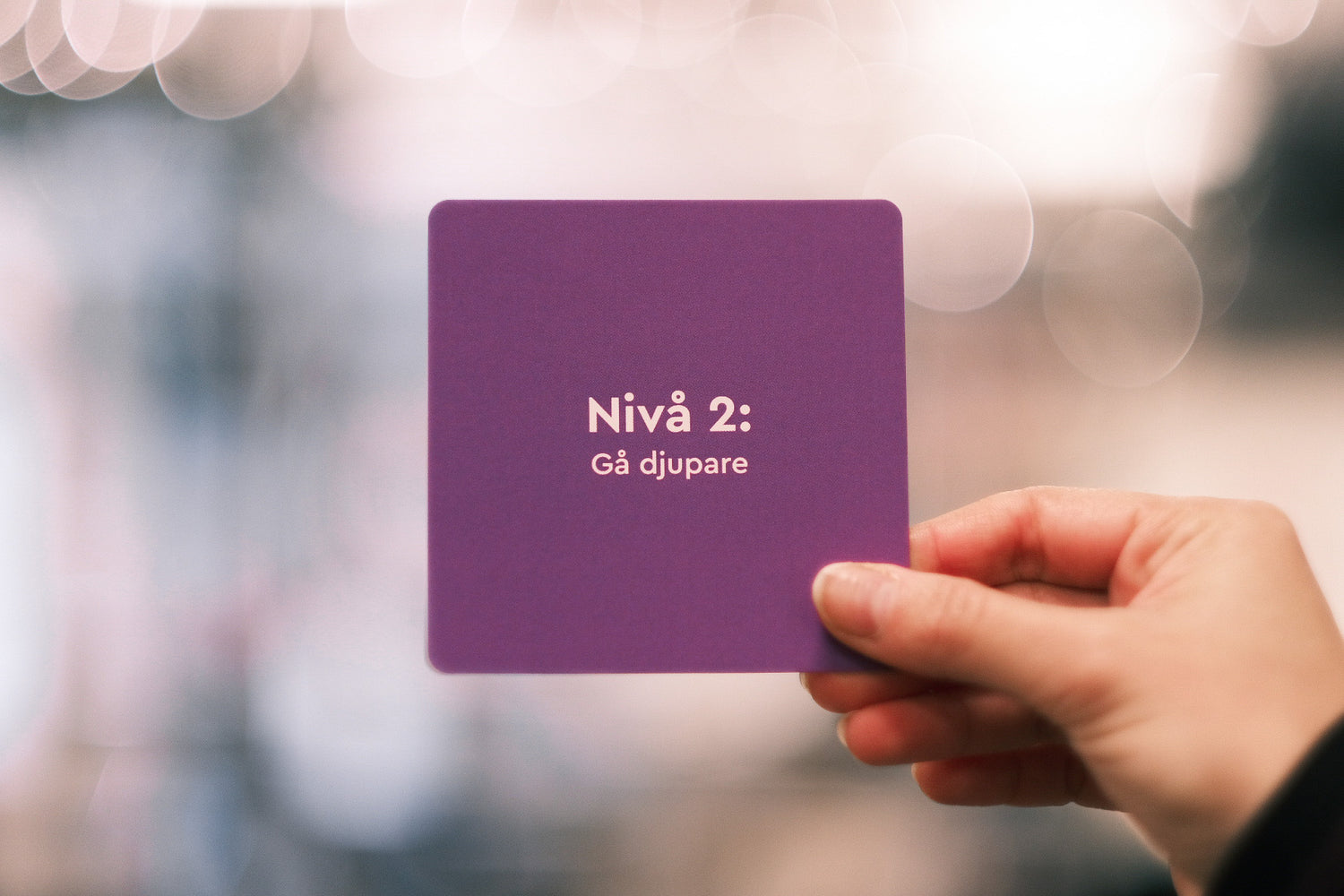 Fortsätt spela lite till och kom till nivå 2! Här går frågorna gradvis djupare, och samtalet blir mer och mer sårbart och reflekterande. Vad längtar du efter i livet? Vad skulle du vilja säga till ditt yngre jag? Vad är det svåraste med att leva med dig? Låt frågorna leda till längre samtal där ni lär känna varandra på djupet.